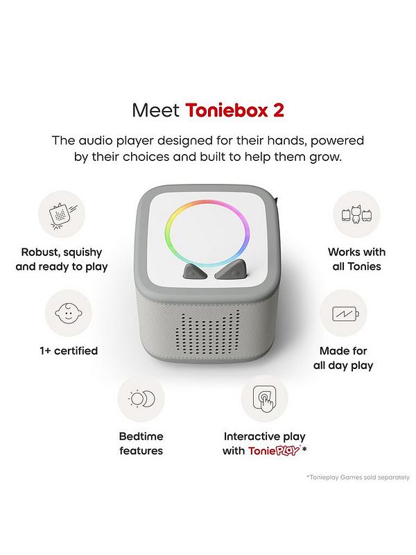 • MADE FOR INDEPENDENT PLAY Designed with kid-friendly, intuitive controls, Toniebox 2 lets listeners explore stories, songs and games from all their favourite characters all on their own, boosting their confidence and independence.