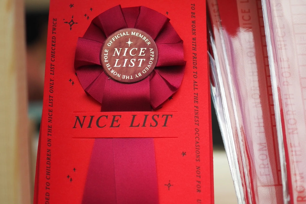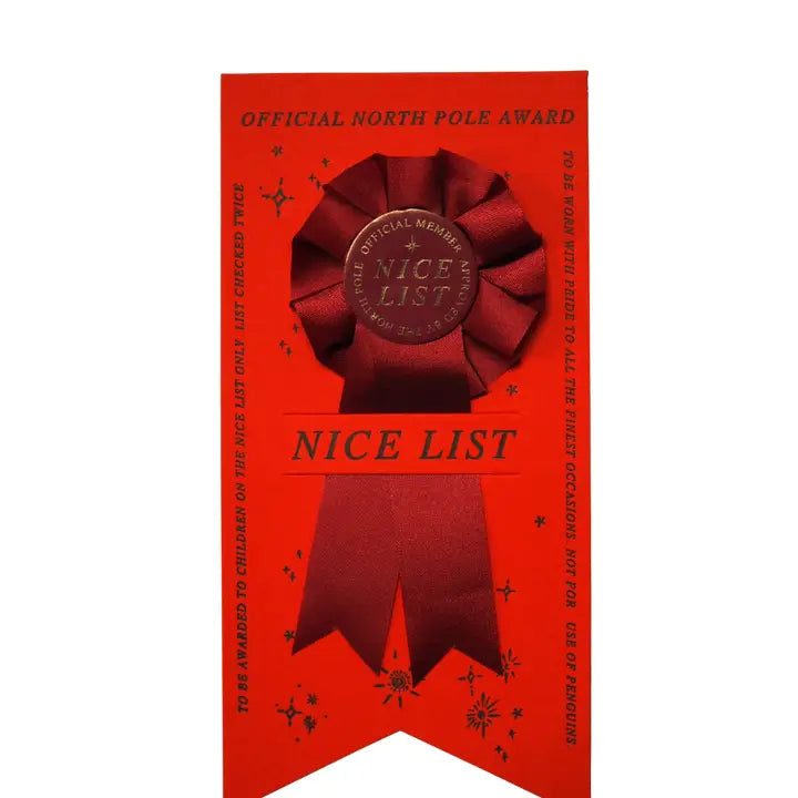 A must have piece for Christmas 2025! Backed on a letter press printed and die cut card for ease of gifting and display. Mini sized rosette with gold foil printing. Each roseete has a saftey pin backing. Not suitable for under 3 years.