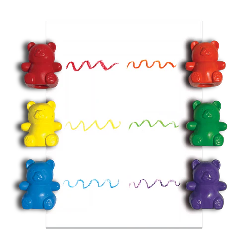 - Set includes crayons in red, blue, yellow, orange, purple, and green