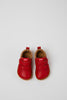 Red and brown calfskin and calfskin nubuck sneakers for kids with Podoactiva® certification, removable EVA footbeds, hook-and-loop system and rubber outsoles (20% recycled).