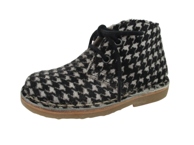 Keep little feet warm, stylish, and supported with the Petasil Koel Laced Boots in Black with White Faux Fur. These beautifully crafted boots feature a checked black and white design.