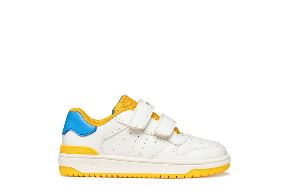 Geox: Washiba Velcro Trainers - White / Lt Blue (Yellow)