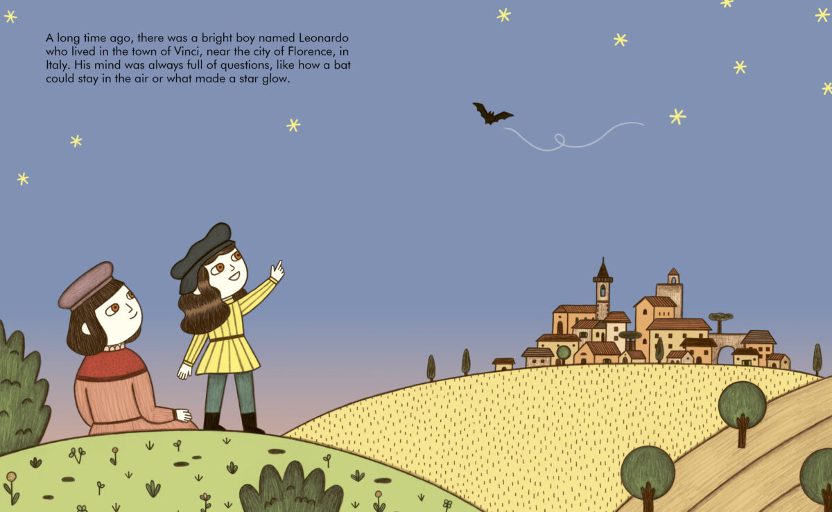 Young readers will follow Leonardo from his childhood in the small village of Vinci, Italy, where he sketched animals and dreamed of flying machines, to his training as an artist and his creation of world-famous paintings like the Mona Lisa and The Last Supper. Along the way, they’ll see how his endless imagination and fascination with nature shaped his life’s work. But his talents didn’t stop there…