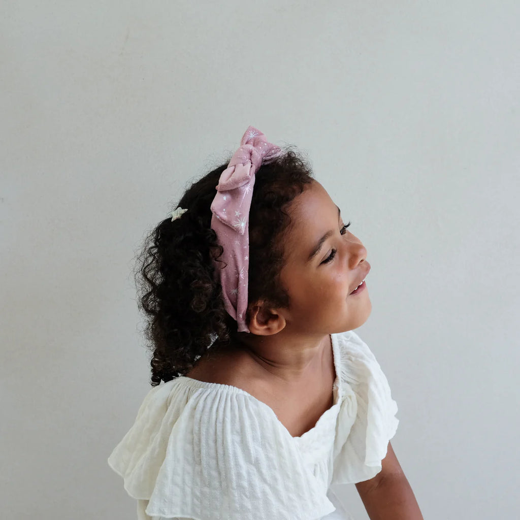 Bring a sprinkle of stardust to your little one’s look with this velvet-covered alice band. Featuring a double central bow adorned with sparkling stars, it’s the perfect playful accessory for any shimmer-loving princess.