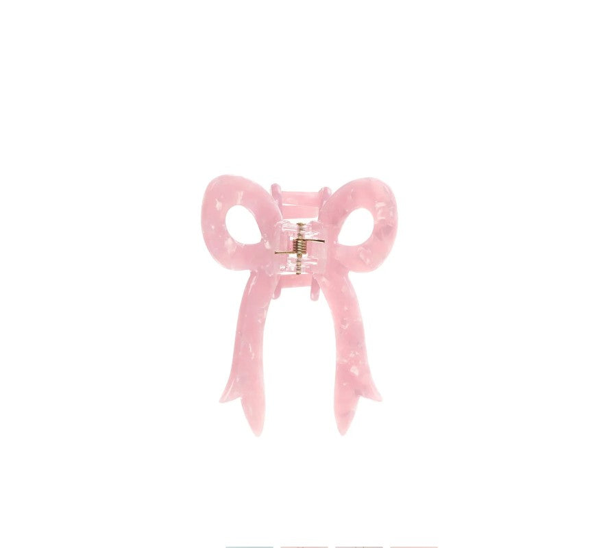 dd a touch of adorable charm to any hairstyle with our Sweet Bow Claw Clip — thoughtfully designed with little ones in mind. Crafted from shimmering, pearly cellulose acetate, this cute bow-shaped clip features small grippy teeth that hold hair securely in place while staying gentle on little locks.