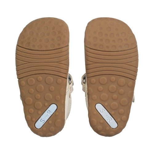 Feet will look summery in our cream Squish T-bar shoes, decorated with sweet strawberry embroidery. Super-soft leather, padded ankles, cushioned insoles, and breathable mesh linings ensure comfort, while scuff-proof toe and heel bumpers protect tiny feet during all their explorations.