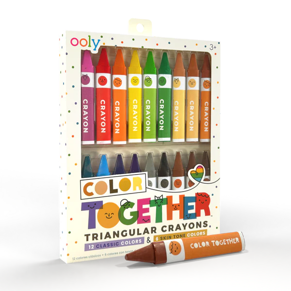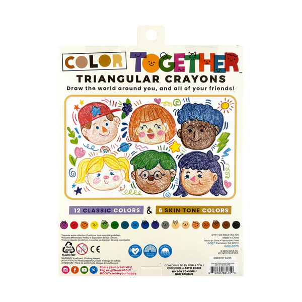 Make art time more inclusive and fun with the Colour Together Triangle Crayons! This 18-pack includes 12 classic colours and 6 skin tone crayons, perfect for colouring people on any page. The unique triangle shape makes these ergonomic crayons easy to hold, especially for small hands, ensuring hours of creative enjoyment for kids. Durable and vibrant, this crayon set is ideal for all art projects, big or small. Whether your little one is drawing themselves, their friends, or their family, these kids' crayons will help bring every character to life.