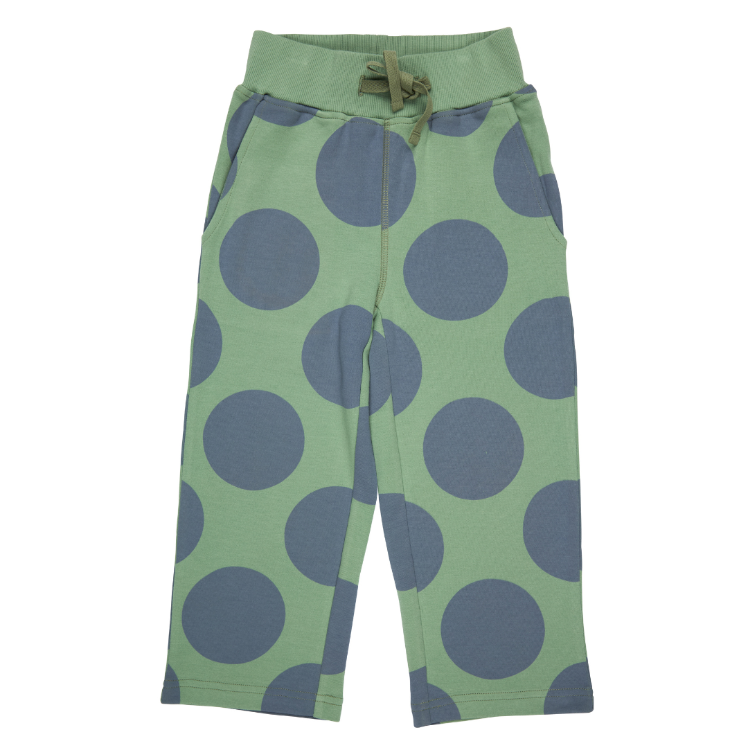 Pigeon Organics: Jersey trousers, giant spot - blue / green
