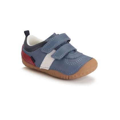 Zap in denim blue offers a contemporary and sporty feel to our pre-walker selection. The two rip-tape fastenings make getting shoes on or off a dream whilst also allowing for an adjustable fit. The colour detail of white and red adds interest.