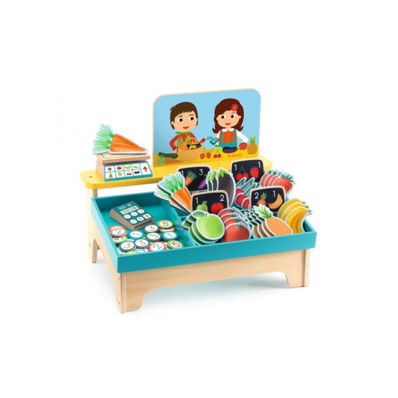 Step into the world of pretend play with this beautifully designed role-play set from Djeco. The Little Market includes a wooden stall, fun accessories like a till, coins, a bank card and bags, plus a variety of colourful fruit and vegetables for little ones to “sell” or “buy”. It’s ideal for encouraging counting, social skills and imaginative shopping adventures.
