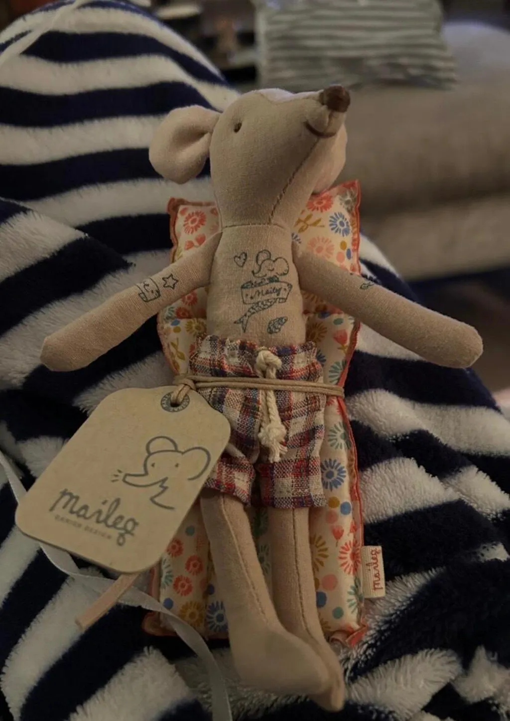 Maileg: Beach Mouse with Air Mattress - Dad (Flower)