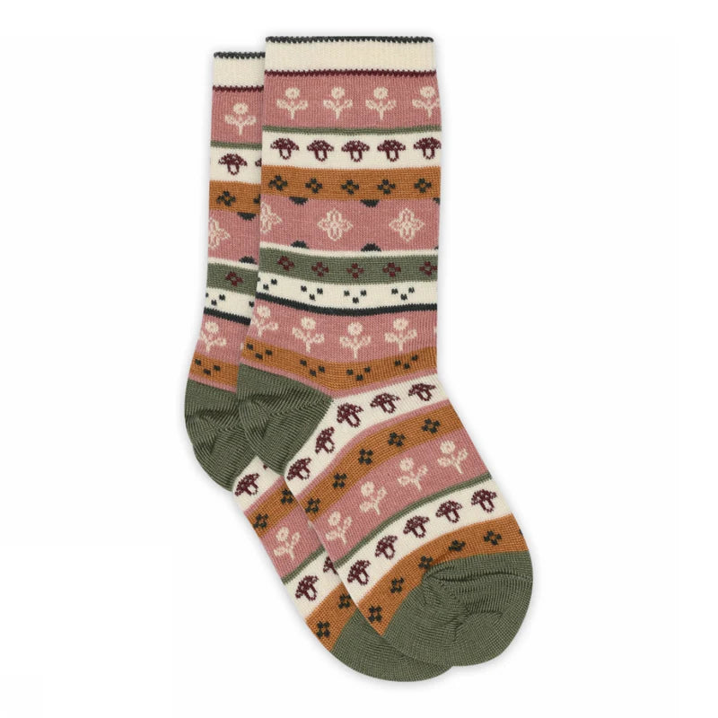 Socks in wool from MPkids. The socks are striped and decorated with nice patterns and motifs in beautiful colors.